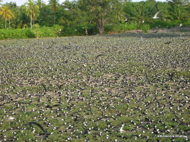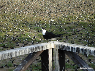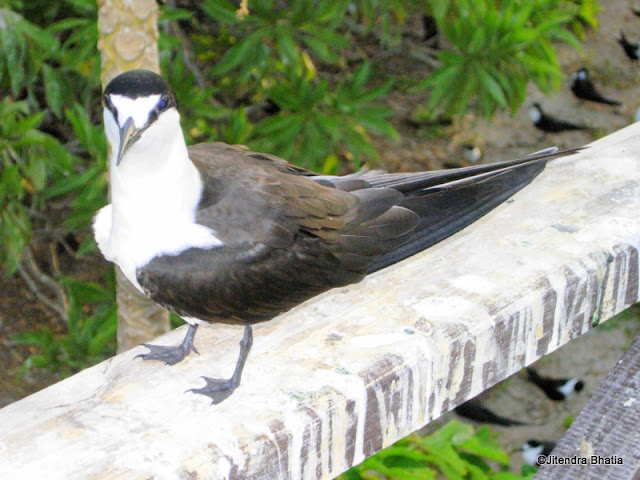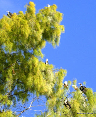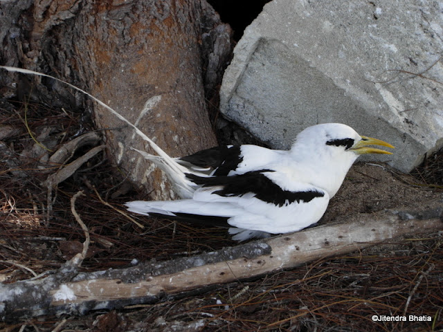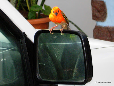 Fodies are quite fearless in the domestic environment, very much like the common sparrow. One also comes across flavism in Fodies. Non breeding male fodies are canary yellow in colour. A hoard of them came down to our breakfast table in the resort, looking for crumbs. Interestingly, a number of endemic birds of Madagascar are distinguished by a dark patch of varying colour around the eye. The male fodies have a dark black patch around the eye, while Couas have a blue patch and the wangas have a white patch. Even the white eye of Madagascar has a much broader ring around the eye. It is not clear whether this commonality is related to a unified genetic origin.