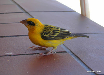Weavers are close cousins of the sparrow. The grasslands of Madagascar are home to two of these weavers, the Nelcourvi and the Saklava, both of which have the canary yellow as their base colour. Very much like our Indian 'baya' bird, the males make exotic nests, which require to be approved by the female before it decides it to be suitable for raising the family. Interestingly, the name Nelcourvi has its origin in the Tamil word for Finch- nellukuruvi. Sakalava derives its name from a tribal clan of the island in the 17th century, which was later merged with the French Madagascar.